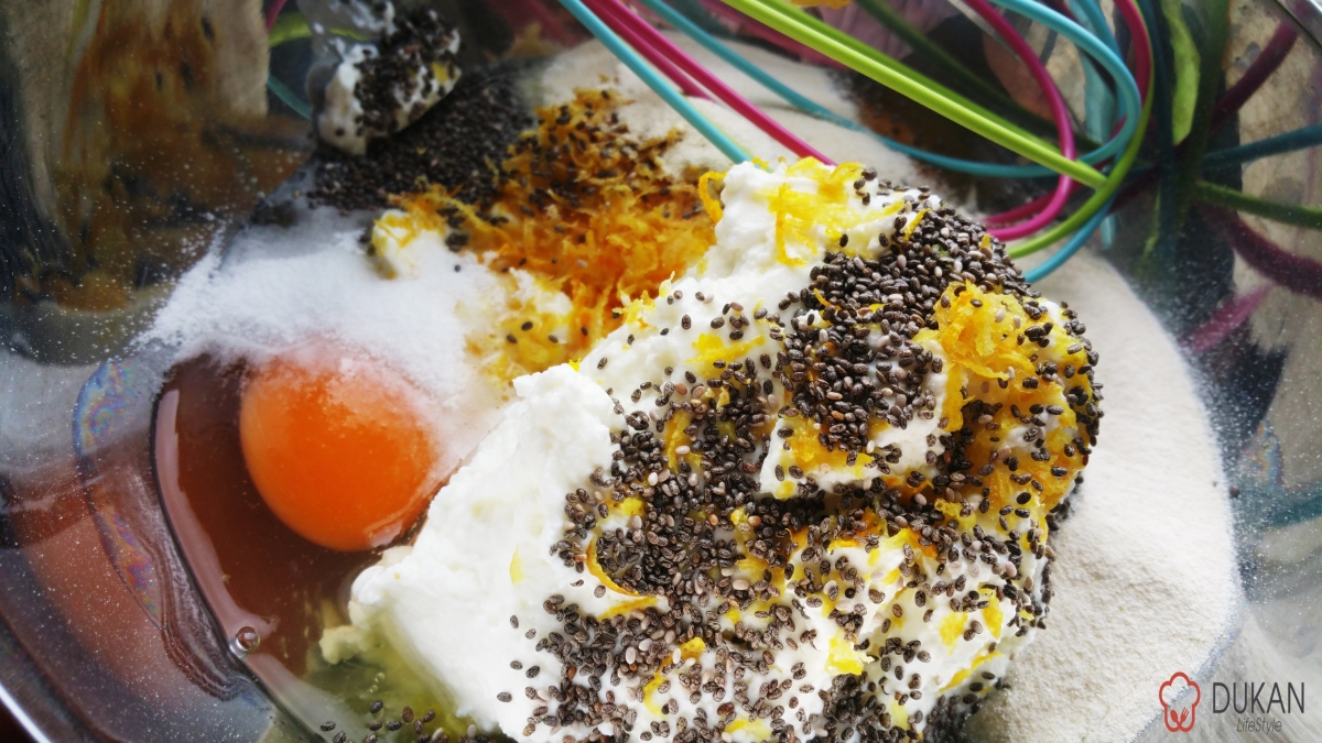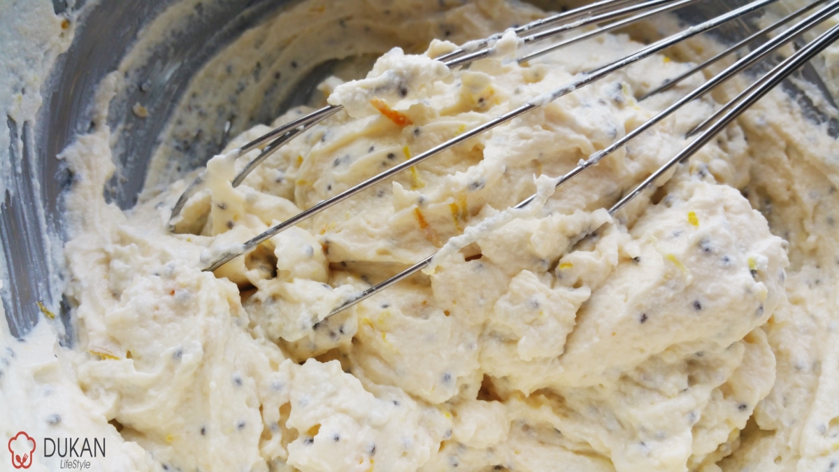 Branza o amestecam cu 2 oua, indulcitor,1 plic de zahar de mesteacan vanilat (sau esenta de vanilie), coaja de lamaie si/sau portocala rasa, semintele de chia si 10 grame (1 lingura) gris.
